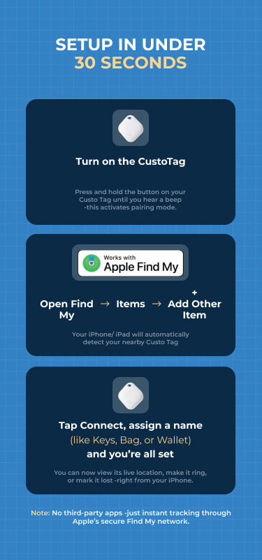 Single Ownership: Each tag can be linked to only one Apple ID, ensuring your data stays private and secure.