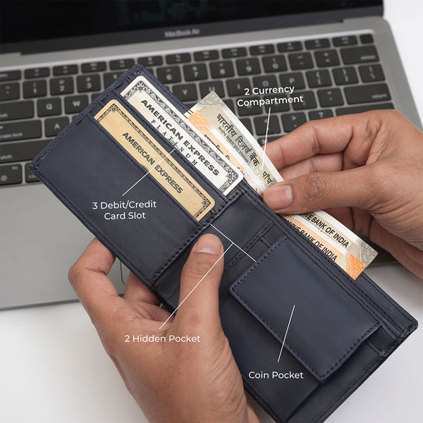 Wallet: 2 cash slots, 3 front card slots, 2 side card slots, 1 coin pocket