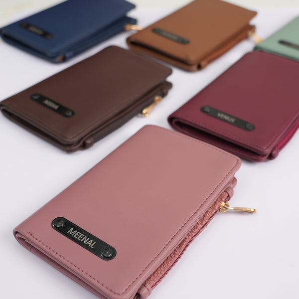 Introducing our collection of personalized women's mini wallets, made from premium quality vegan leather. Our wallets are thoughtfully designed to provide enough space for all your needs and organization with multiple compartments and card slots, all while being kind to the environment. Our commitment to sustainability is reflected in every aspect of our product, from the materials we use to the handcrafted production process. With a great range of pastel colors to choose from, our wallets are perfect for any occasion and personal style.
